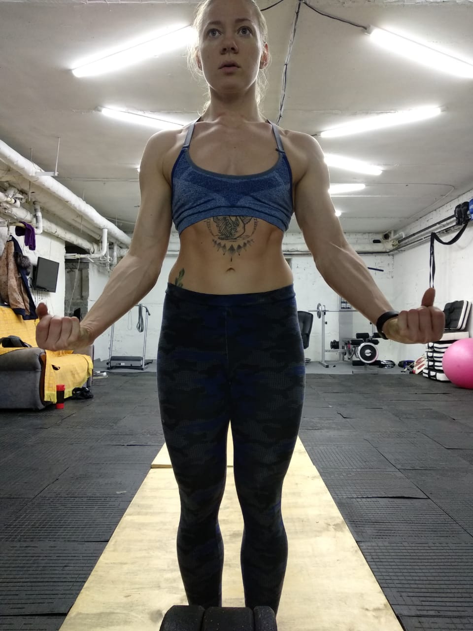 Толкнула 65кг. Вот взятие для меня легко, а от самого толчка отвыкла. Нужно быть резче-быстрее вставлять локти и фиксировать штангу. Не бояться оказаться под ней. См. видео