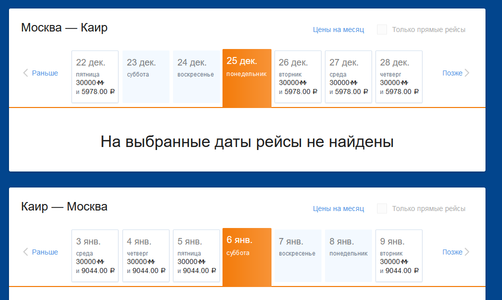 Таким способом промониторил основные направления. За бабло есть почти везде перед НГ. А за мили ток нашёл Мск - Каир - Мск