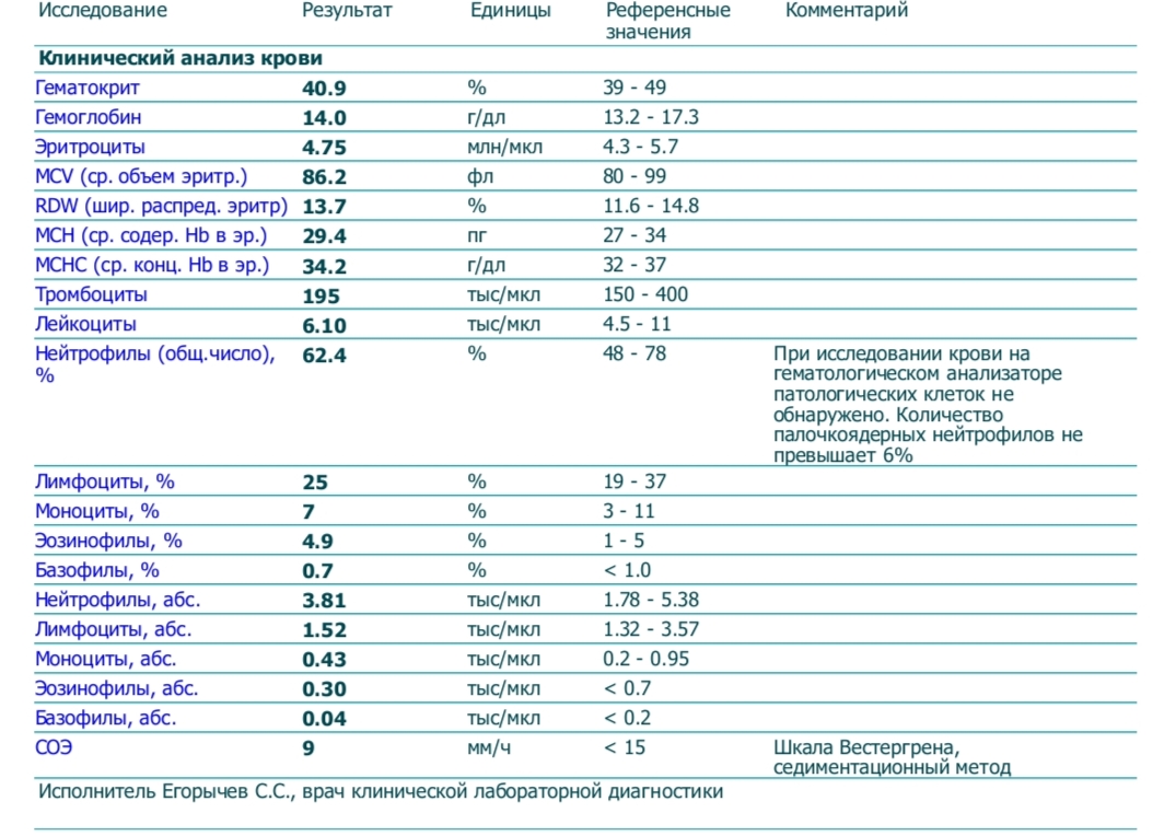 Остальные анализы в норме