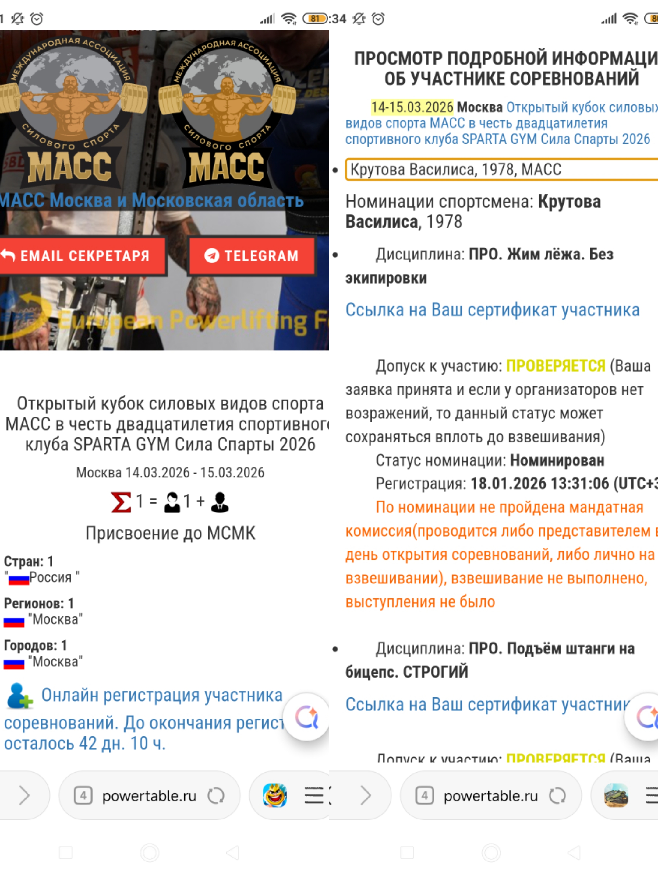 Пока зарегилась в жиме и в Строгом подъёме на Бицепс. Ближе к соревнованиям решу добавлять что-то ещё или нет