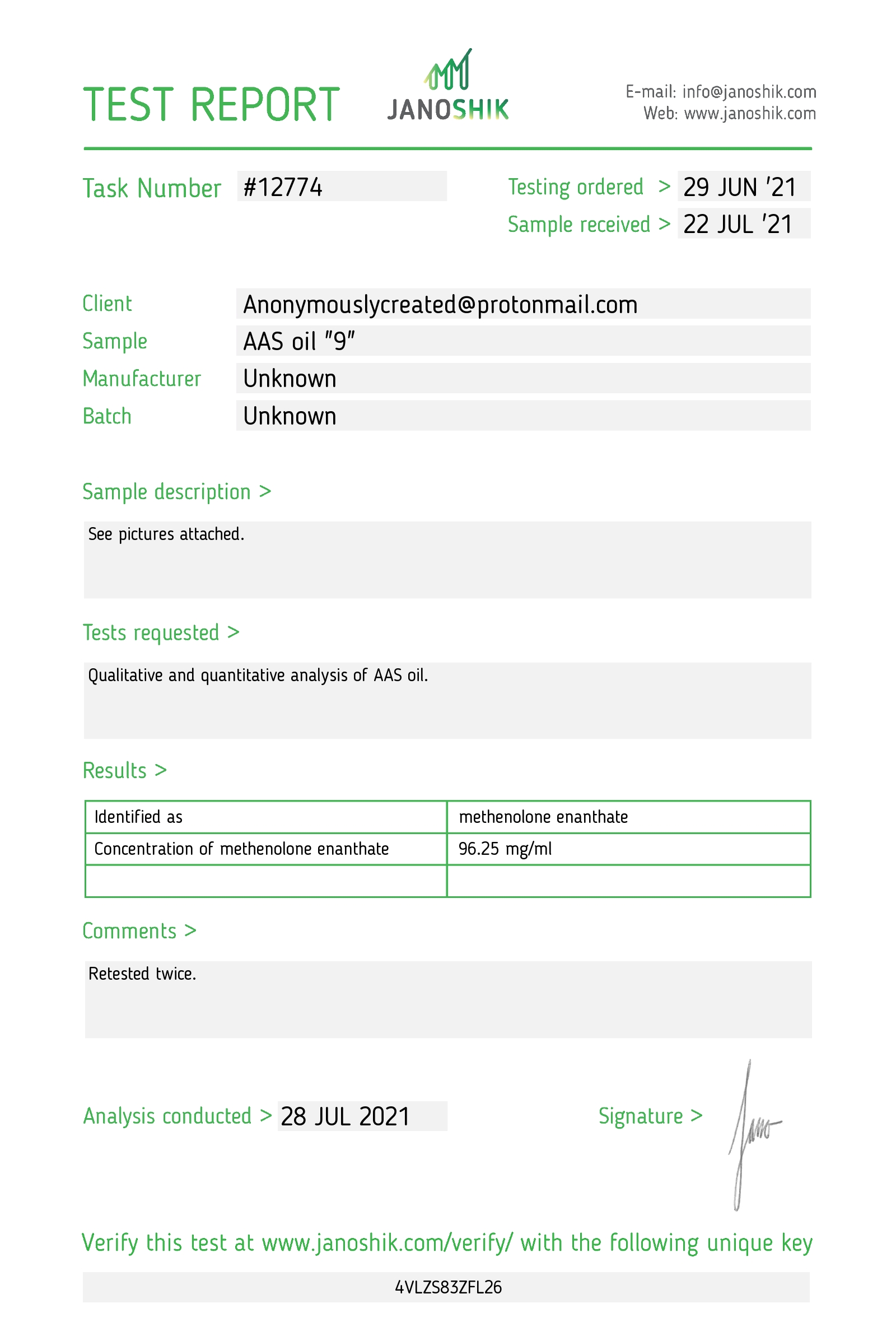 Это хороший анализ почти 100% без посторонних примесей других анаболиков.