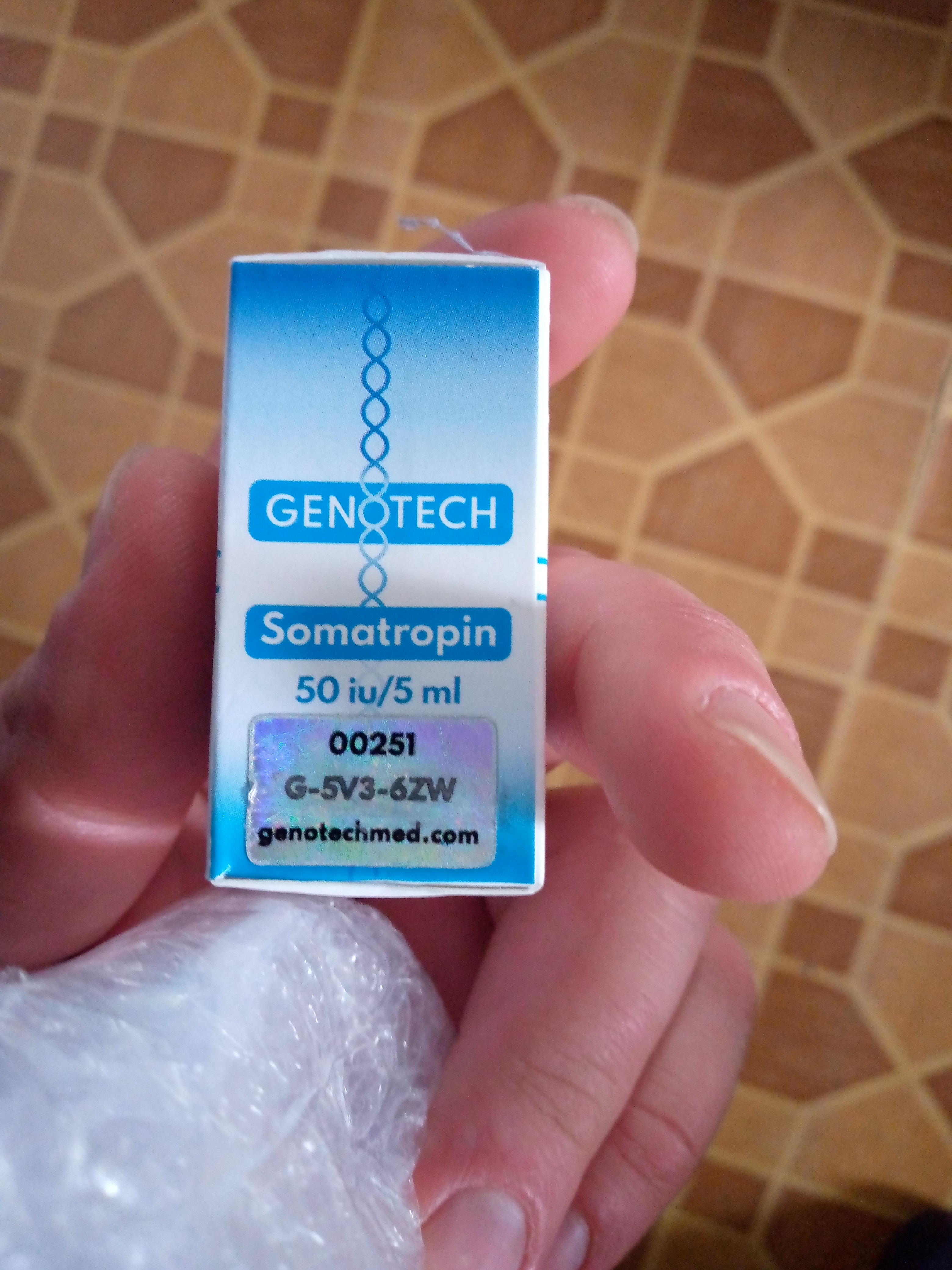 Новинка от Genotech прилетела в Москву за 2 дня На официальном сайте проверочный код бьётся как оригинал ! Будем пробывать Далее дополню отзыв о рабочести препарата , сдам ИФР и СТГ. Первые инъекции заходят на ура , без покраснений и болезненности , что говорит о чистоте и стерильности гр.