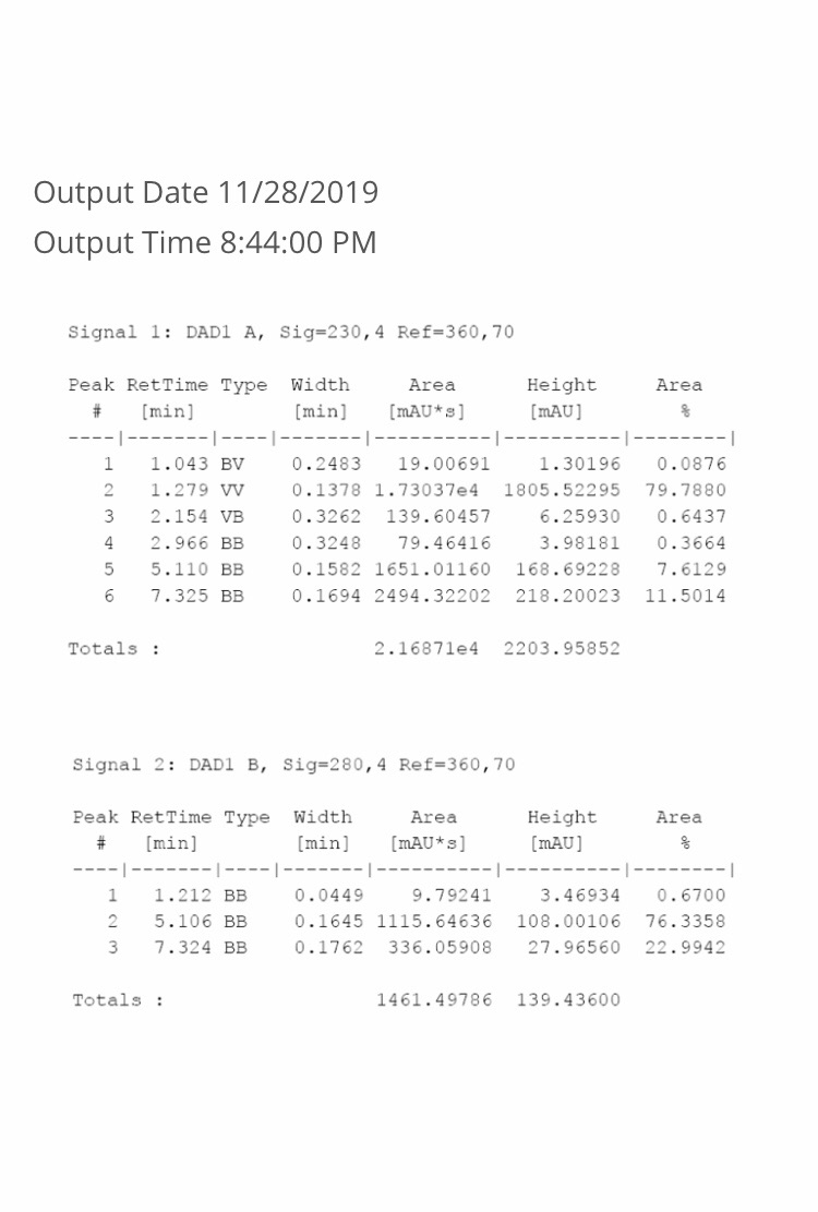 То что ты принял за %содержание гр, является площадью кривой пика, что в таблице и указано. Целью анализа было количественное определение соматотропина, и его содержание равно 4,0mg/ml.