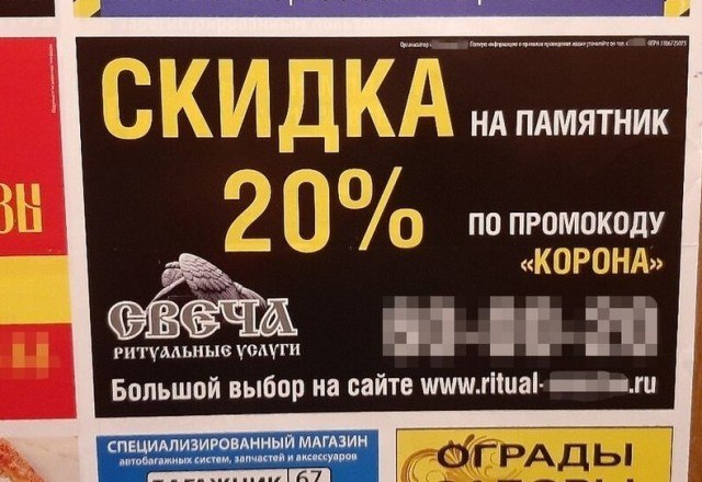 Смоленские похоронщики предлагают скидку по промокоду "КОРОНА"