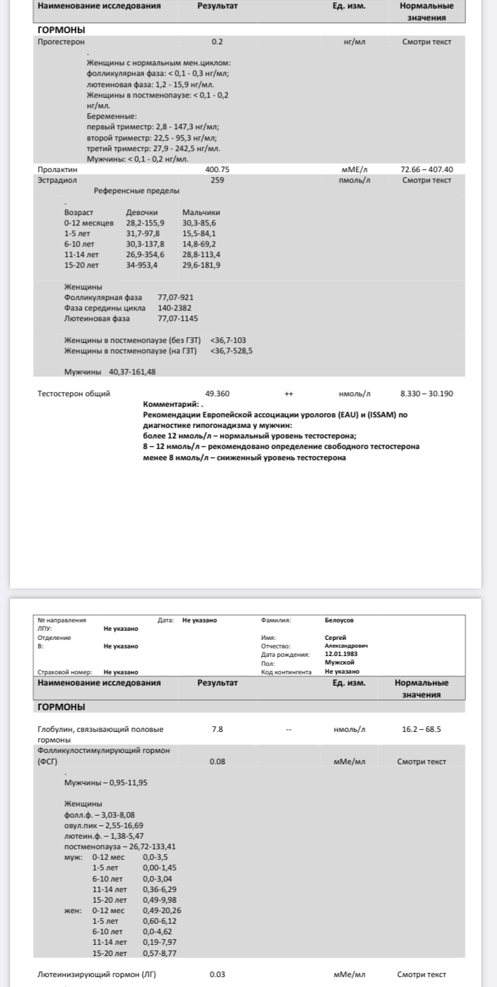 Через пару недель пересдам, как положено. Я просто думал, что за три недели уже тест накопился в организме и через 48 часов, должно норм показать результат? Раньше такого не было, сдавал и через 24 и через 48, было 120+ н моль. Ладно похер, пару недель ещё поколю и пересдам.