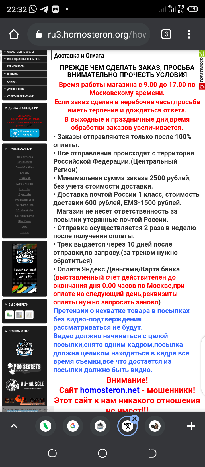 Если по какой-то причине у вас недоступен наш сайт, напишите пожалуйста нам в Telegram @adm_homosteron2