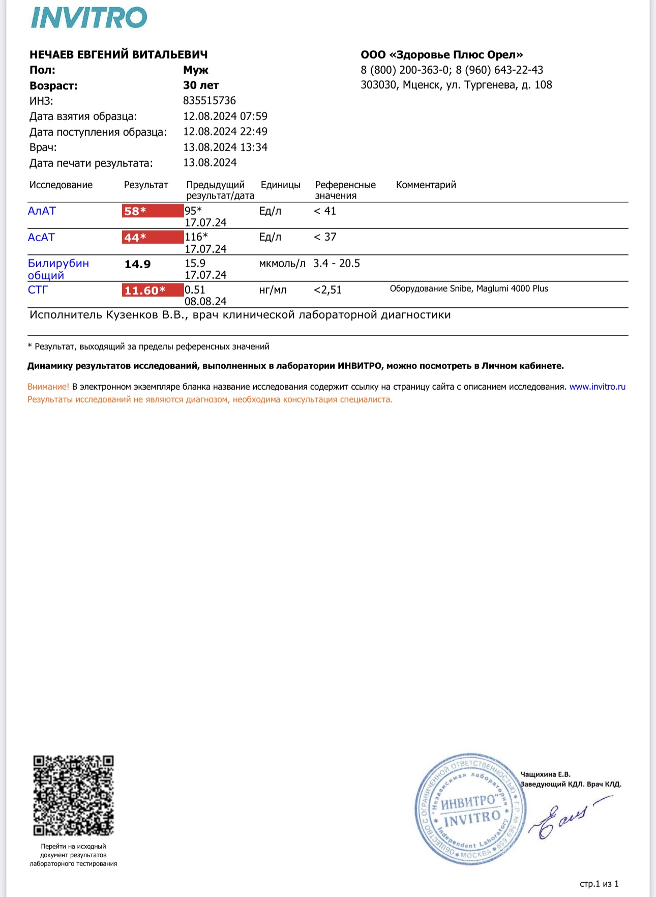 Добрый вечер! Пришел результат анализа ГР Фероксен 5 ед в мясо через 2 часа 15 мин. Судя по показаниям и ощущениям ГР рабочий и соответствует заявленным показателям.