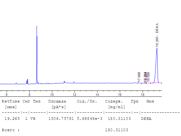 Сейчас мы поставили методики на большинство ДВ по методу газовой хроматографии с пламенно-ионизационным детектором. У каждого вещества есть свое время и свой пик. В общем, все будет видно далее.