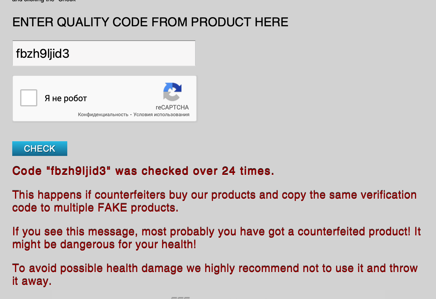 Код пробит- подделка!