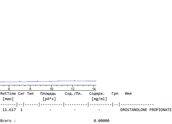 1. Качественный анализ: образец НЕ содержит действующее вещество - Дростанолон Пропионат.
