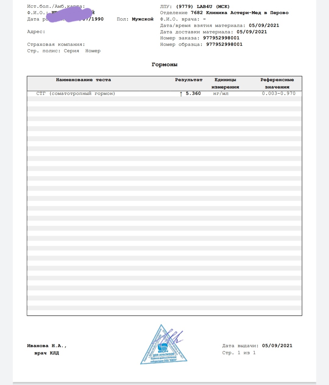 Пришел результат анализа: