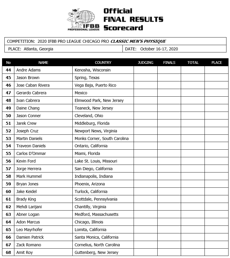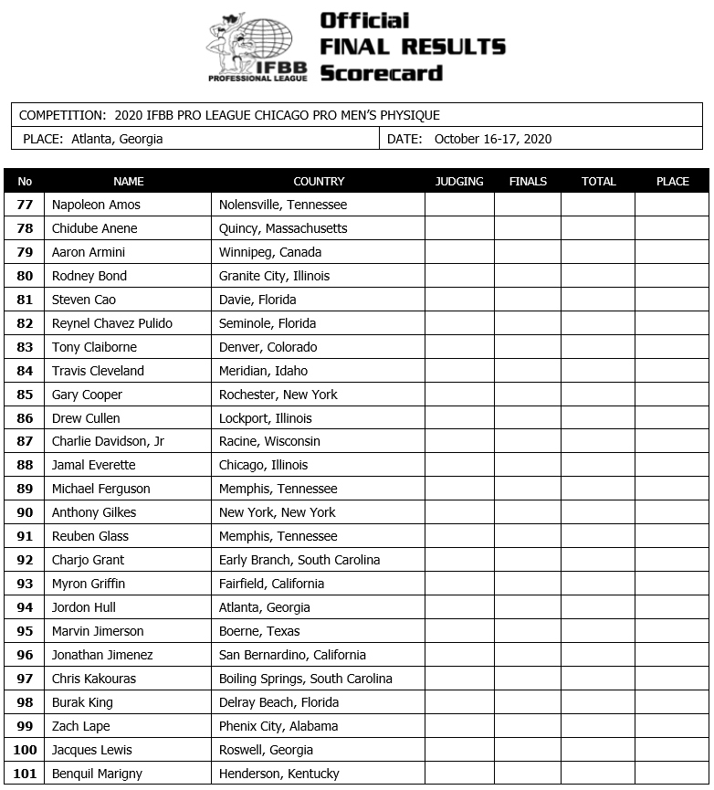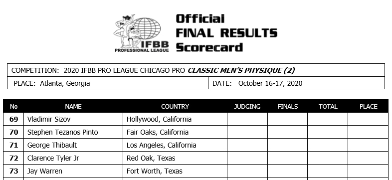 Не за горами квалификационный турнир Chicago Pro 2020 года, и наконец-то был обнародован официальный список участников. Соревнования будут проходить с 16 по 17 октября 2020 года и это прекрасная возможность пройти квалификацию на Olympia Weekend 2020 года, поскольку квалификационное окно закрывается после 18 октября 2020 года. Сравнения пройдут в большинстве профессиональных дивизионов федерации IFBB Professional League и для проведения выбрана новая локация в Атланте. Именно там покажут свою подготовленную форму Владимир Сизов, который выступит в категории Классик-Физик, бывшая сибирячка Аурика Тыргалэ (Aurika Tyrgale) - участница дивизиона Fitness будет представлять на сцене штат Флориду. И единственный гражданин России, спортсмен команды живая сталь @realsteel_official Мохамед Эль Емам (Mohamed El Emam) будет бороться за выход на зимнюю Олимпию-2020 в категории открытого бодибилдинга. Мохамед уже находится в США и удачному перелету атлета, по его словам, благоприпятствовала информация, что он единственный будет выступать в группе из двадцати американцев (после последнего обновления списка в нее был добавлен и колумбиец).