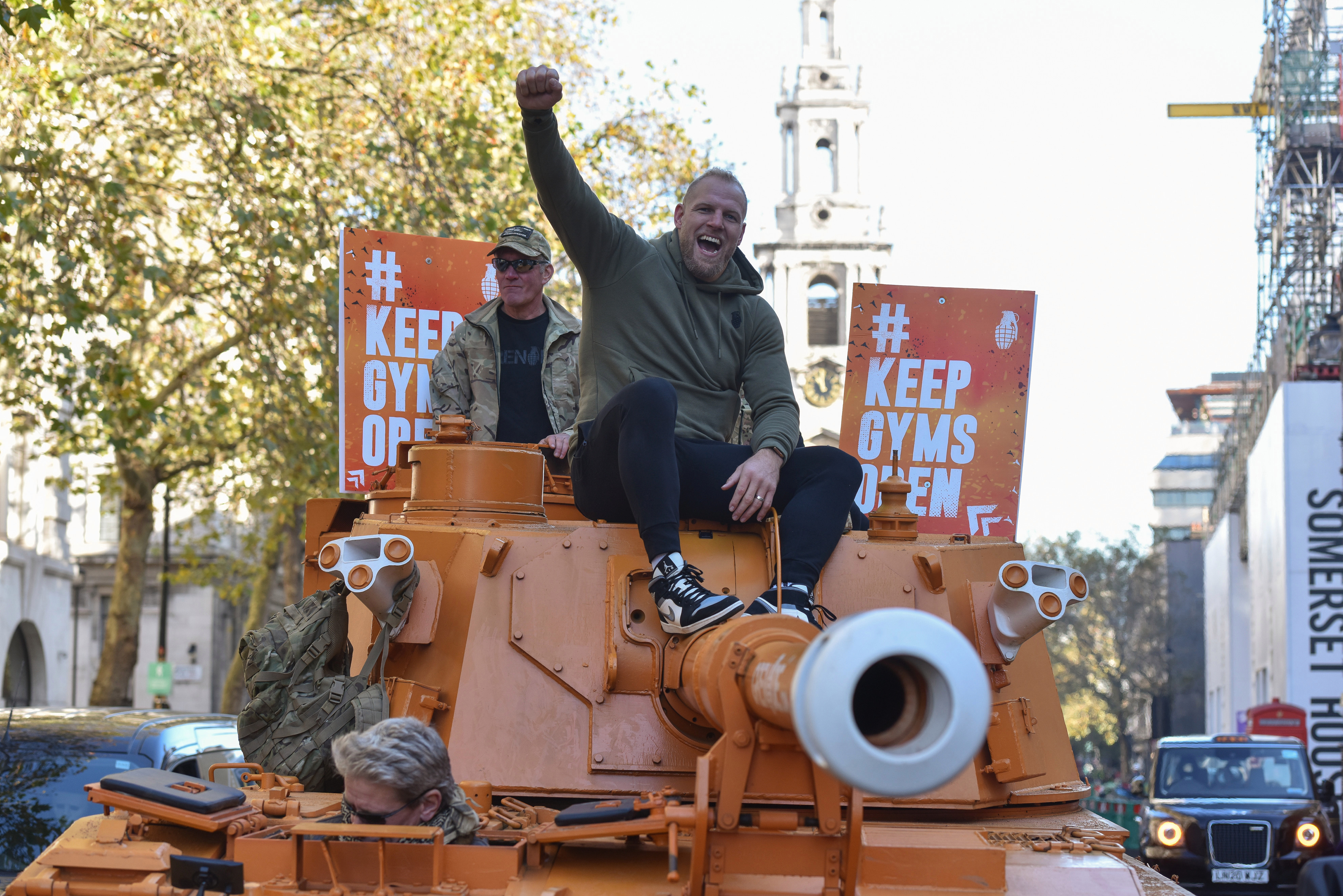 Спортивные залы по всей Англии вынуждены закрывать свои двери с 5 ноября по 2 декабря 2020 года включительно, чтобы внести свой вклад в снижение числа COVID-19 по всей стране. Однако многие люди считают, что тренажерные залы должны оставаться открытыми из-за их пользы для здоровья. Компания по производству спортивных добавок Grenade, с бывшим регбистом Джеймсом Хаскеллом в качестве амбассадора бренда, очень четко заявили о своей поддержке этой идеи, что хорошо видно по их оранжевому танку в центре английской столицы.