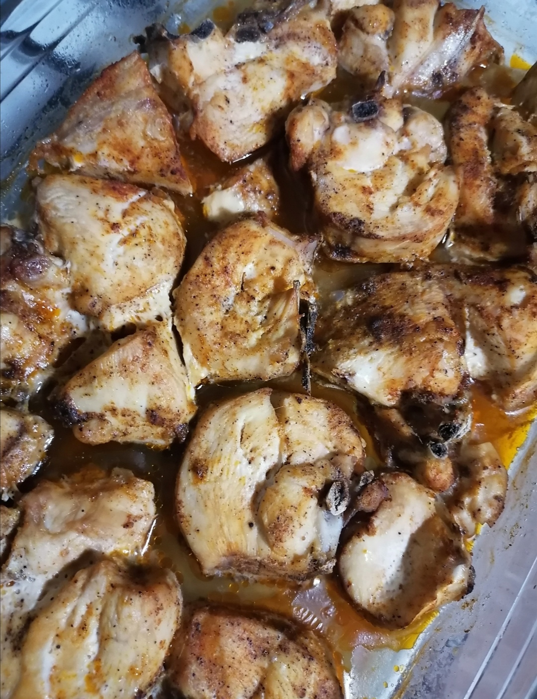 Привет, грудку без кожи режу кусками, солю, она не даёт влаге выйти из мяса, специи по вкусу, я острого перца и специи для курицы сыпанул, чуть растительного масла и на день в холодильник, потом в духовку под фольгой мин 40,потом снимаю фольгу и минут 15 ставлю верхний гриль, Ништяк получается)