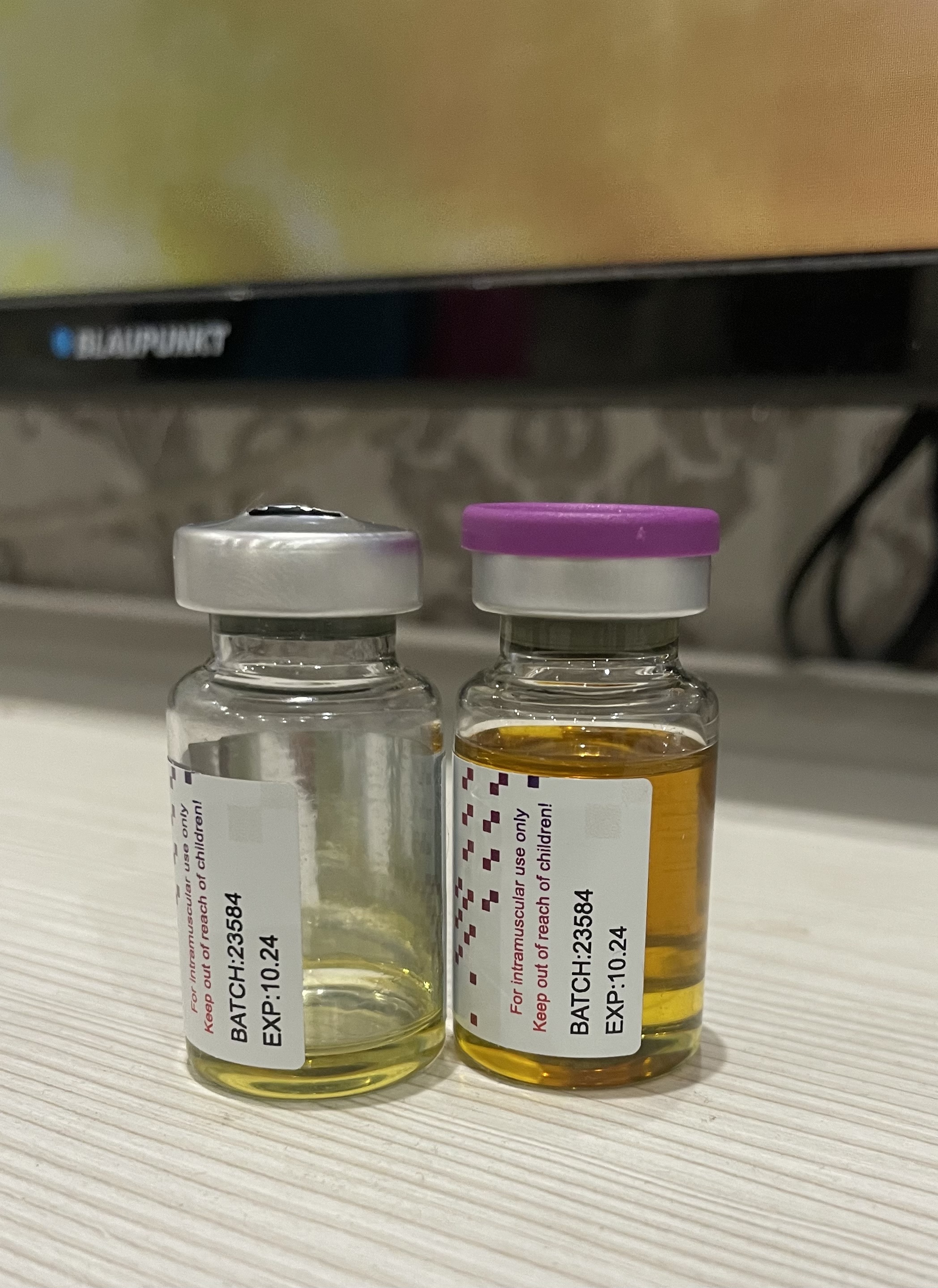 Посмотрим, что с декой получится, без теста, хотя фон теста должен остаться, тк последняя инъекция 250мг суста была в субботу. Дека была в прошлую среду 375мг(1,5куба) и вчера 500мг(2куба), завтра с утра поставлю 500 деки и , надеюсь 200 трена, если наберется. Поставлю в бедро, чтоб, наверняка в шишку не попасть, хотя они не прощупываются. Пролактин, в моем случае не будет информативным, тк несколько раз проверял, и точно знаю, что от трена и деки не растет. Трен э есть еще 2 флакона, цвет у них другой, возможно новая партия, надо посмотреть. Можно и их проверить, ради интереса. А вообще, заказал трен э фк, хотел после симплекса его поколоть, для сравнения и анализ сдать. Так что не знаю, как лучше сделать.